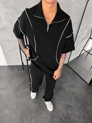 NK Yarım Fermuar Şardonlu Eşofman Takımı-Siyah