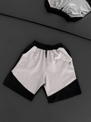 Parçalı Unisex Şort - Gri