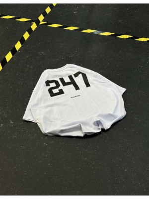 247 Sırt Baskılı Unisex Oversize Tshirt - Beyaz