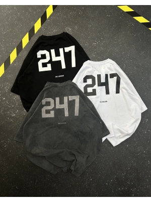 247 Sırt Baskılı Unisex Oversize Tshirt - Siyah