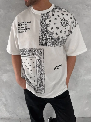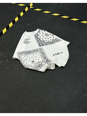 Bandana Ön Baskı Oversize Unisex Tshirt - Beyaz