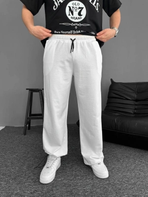 Basic Paça Lastik Baggy Unisex Eşofman - Beyaz