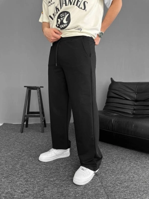 Basic Paça Lastik Baggy Unisex Eşofman - Siyah