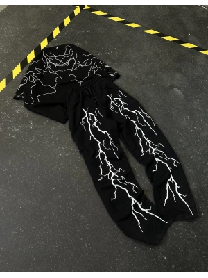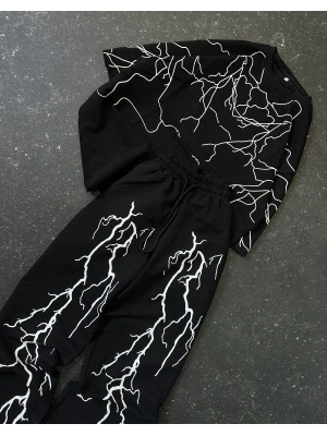 Şimşek Desen Unisex Eşofman Takımı - Siyah
