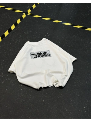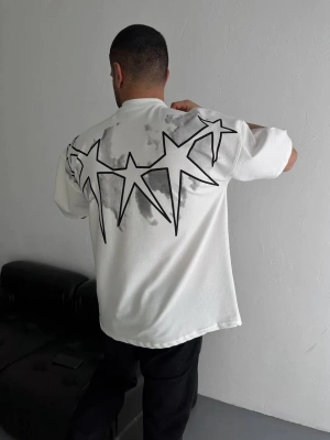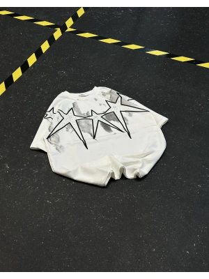 Taş İşleme Star Oversize Unisex Tshirt - Beyaz