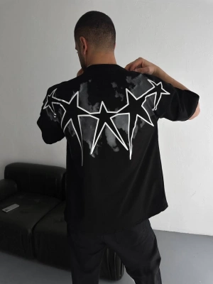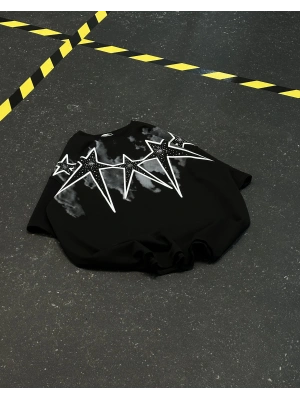 Taş İşleme Star Oversize Unisex Tshirt - Siyah