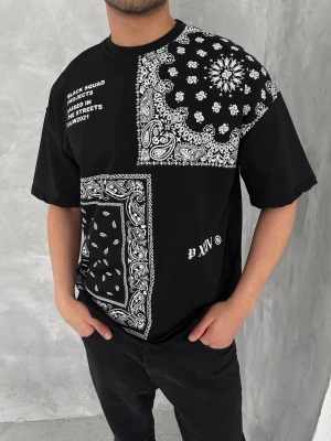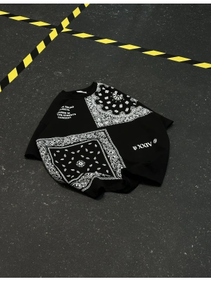 Bandana Ön Baskı Oversize Unisex Tshirt - Siyah