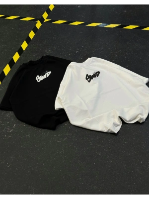Şerit Detay Oversize Unisex Tshirt - Beyaz