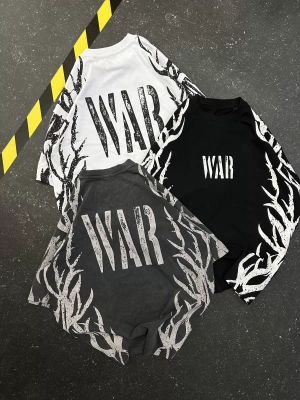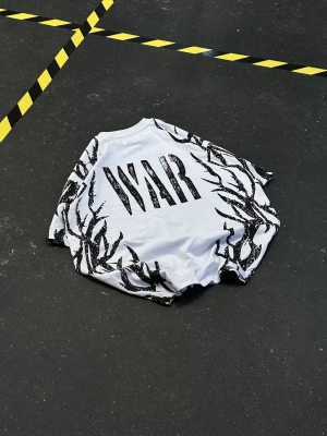 War Baskılı Oversize Unisex Tshirt - Beyaz