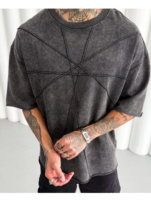 Yıkamalı Tasarım Oversize Tshirt - Antrasit