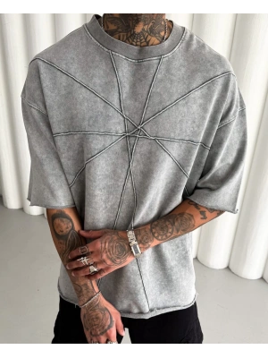Yıkamalı Tasarım Oversize Tshirt - Gri