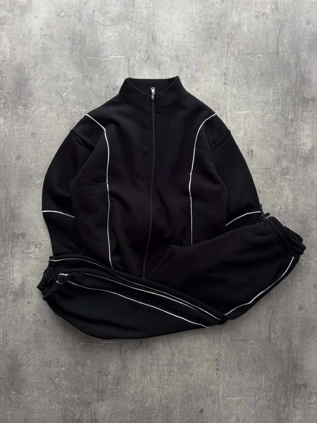 Biyeli Paça Lastik Şardonlu Eşofman Takımı-Siyah
