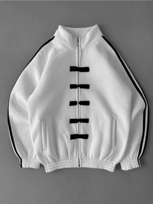 Taşlı Şardonlu Unisex Hırka-Beyaz