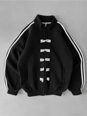 Taşlı Şardonlu Unisex Hırka-Siyah