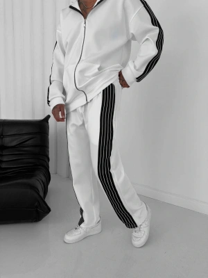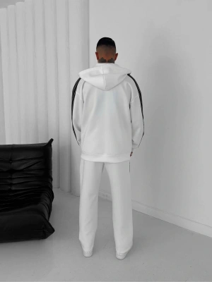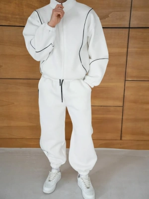 Biyeli Paça Lastik Şardonlu Eşofman Takımı-Beyaz